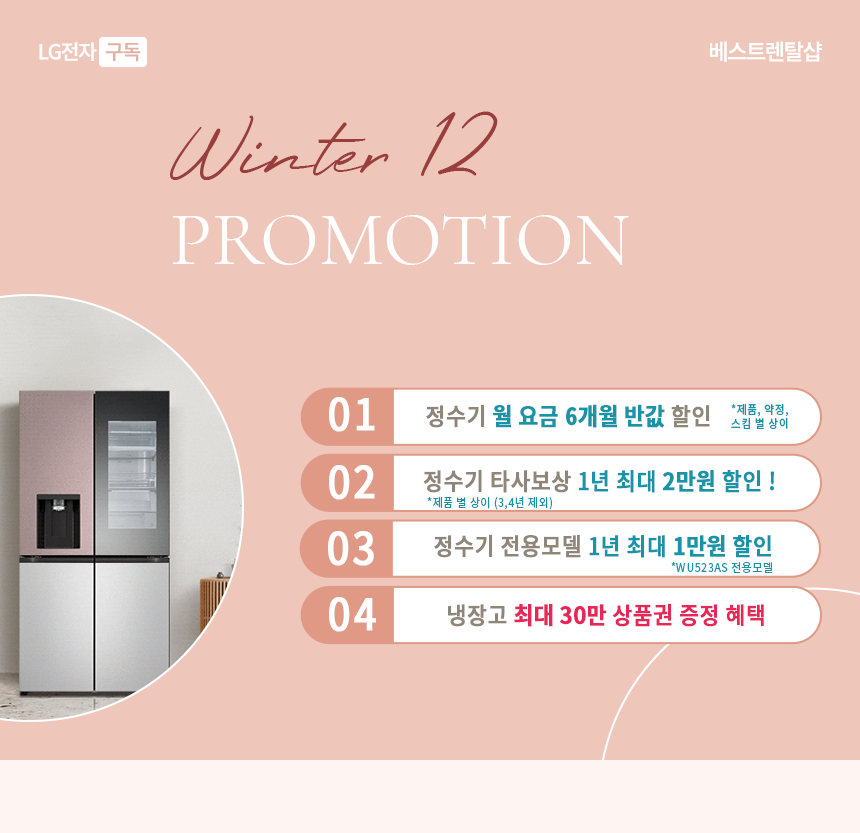 - 베스트렌탈샵 이하 ("당사")는 구독상담을 이용하는 귀하의 개인정보를 아래와 같이 수집·이용합니다. 상세한 내용은 개인정보 처리방침에서 확인하실 수 있습니다.