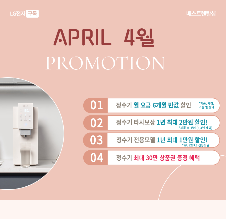 - 베스트렌탈샵 이하 ("당사")는 구독상담을 이용하는 귀하의 개인정보를 아래와 같이 수집·이용합니다. 상세한 내용은 개인정보 처리방침에서 확인하실 수 있습니다.